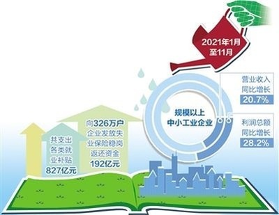 2021年1月至11月,規(guī)模以上中小工業(yè)企業(yè)營(yíng)業(yè)收入、利潤(rùn)總額同比分別增長(zhǎng)20.7%、28.2%,兩年平均分別增長(zhǎng)9.8%、17.1%,體現(xiàn)了中小企業(yè)的韌性和活力。