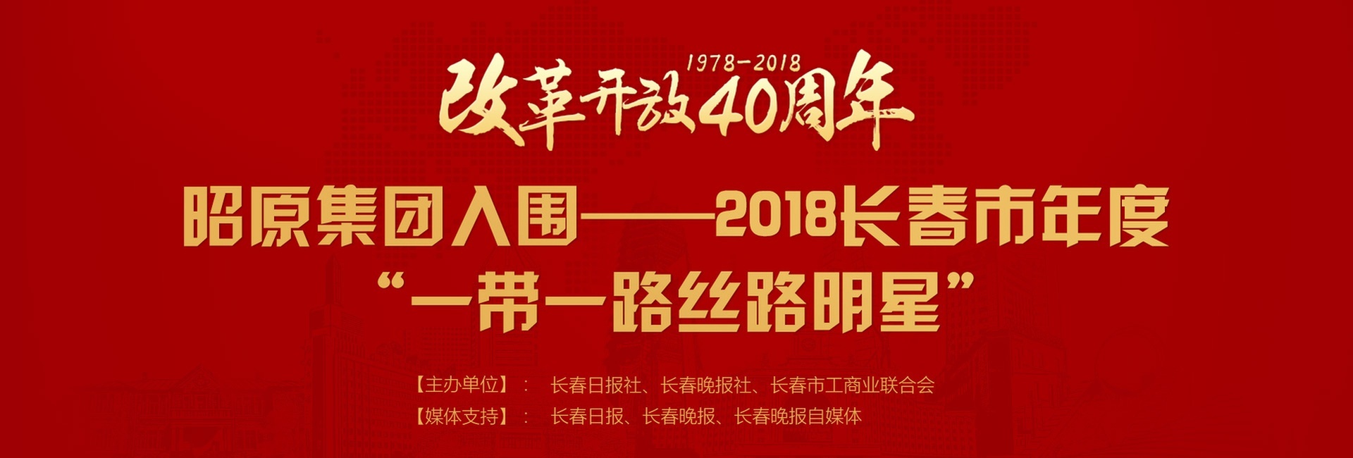 2018年是全面貫徹黨的十九大精神的開局之年,是改革開放40周年,是決勝高水平全面建成小康社會、實(shí)施“十三五”規(guī)劃承上啟下的關(guān)鍵一年。企業(yè)家是經(jīng)濟(jì)社會發(fā)展的主力軍,是推動改革發(fā)展最積極、最重要、最活躍的力量。為展示長春市企業(yè)家的風(fēng)采和在我市經(jīng)濟(jì)社會發(fā)展中所取得的輝煌成就。長春日報(bào)社、長春晚報(bào)社、長春市工商業(yè)聯(lián)合會通過聯(lián)合開展“致敬改革開放四十周年”2018長春市年度“優(yōu)秀民營企業(yè)家、一帶一路絲路明星、杰出企業(yè)中介服務(wù)機(jī)構(gòu)”大型宣傳展示活動,用榜樣的力量助推長春市經(jīng)濟(jì)建設(shè),實(shí)現(xiàn)經(jīng)濟(jì)持續(xù)健康發(fā)展和社會和諧穩(wěn)定。